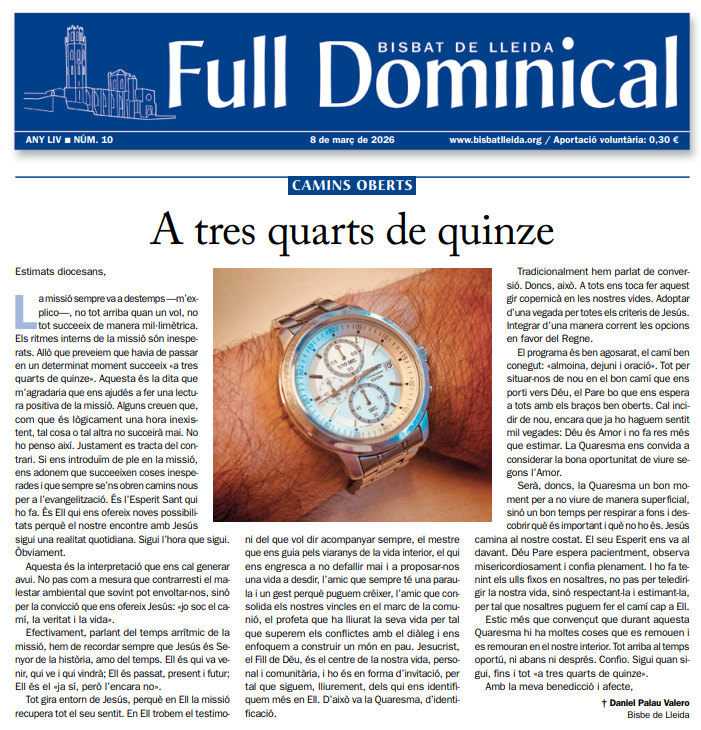 “Full Dominical” Bisbat de Lleida (8 de març de 2026) Full Dominical Bisbat de Lleida08/03/2026 Veure més