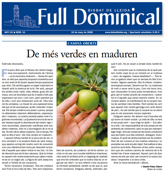 “Full Dominical” Bisbat de Lleida (15 de març de 2026) Full Dominical Bisbat de Lleida14/03/2026 Veure més