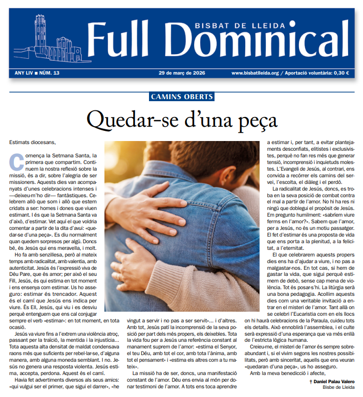 “Full Dominical” Bisbat de Lleida (29 de març de 2026) Full Dominical Bisbat de Lleida26/03/2026 Veure més