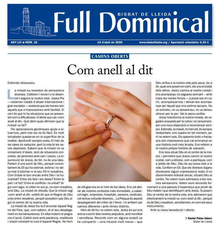 “Full Dominical” Bisbat de Lleida (19 d’abril de 2026) Full Dominical Bisbat de Lleida19/04/2026 Veure més