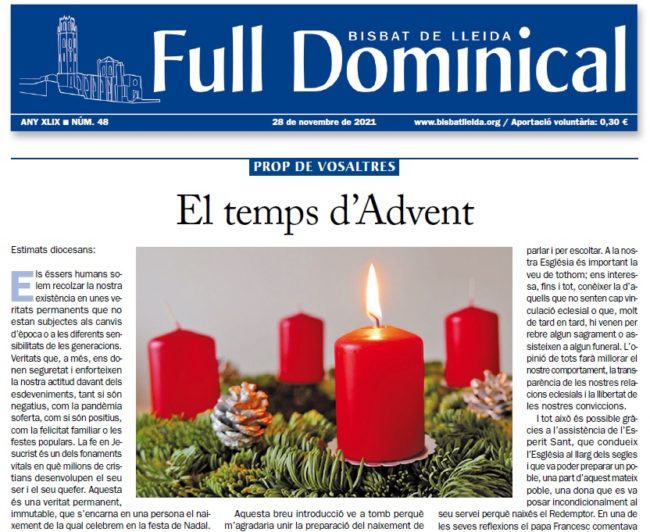 AVISOS PARROQUIALS SETMANALS: [28 NOVEMBRE 2021]