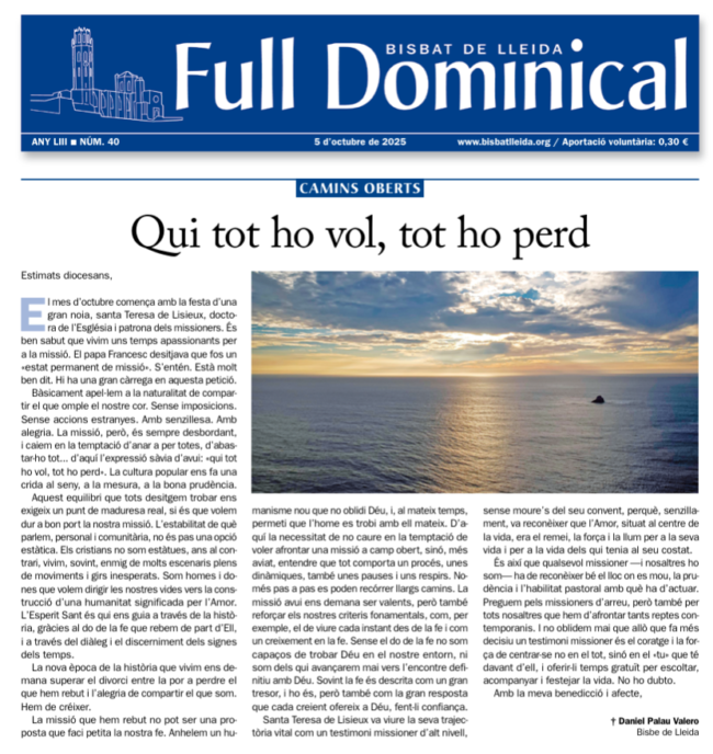 “Full Dominical” Bisbat de Lleida (5 d’octubre de 2025)