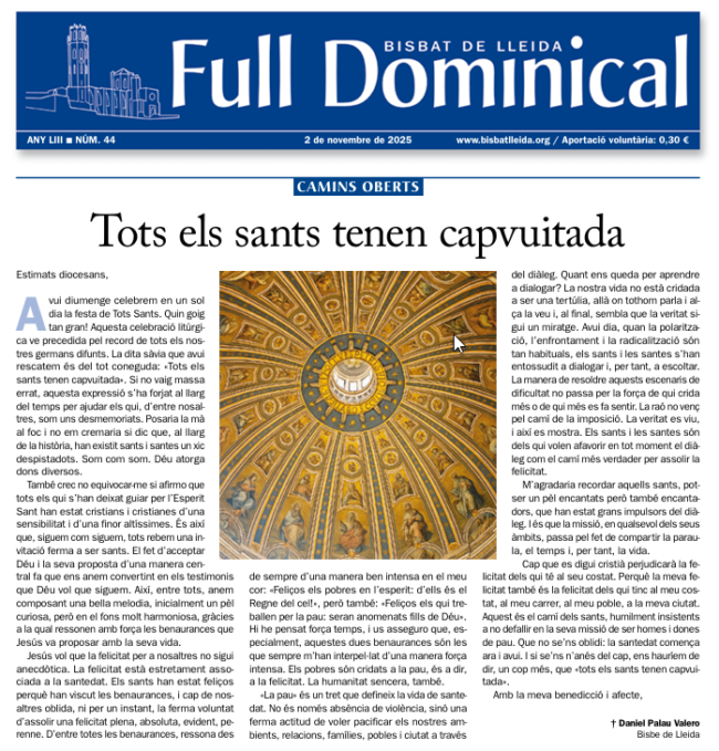 “Full Dominical” Bisbat de Lleida (2 de novembre de 2025)