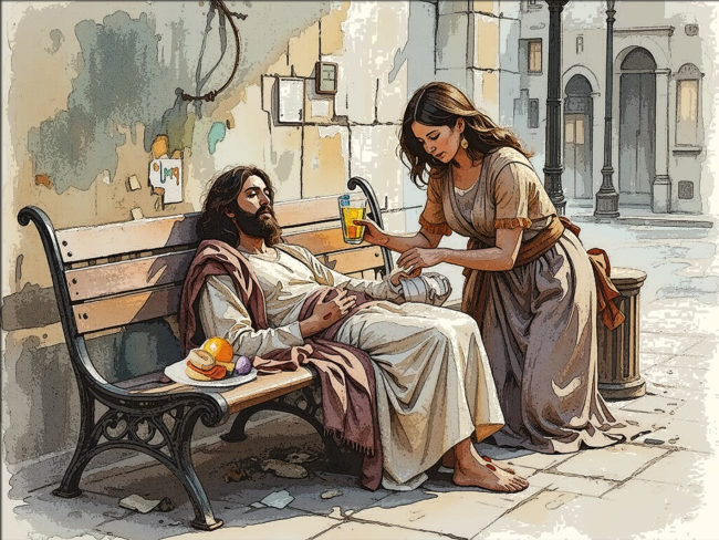 IMATGE d’ART d’Amadeu Bonet i Boldú  Jacint Cabau.   Evangeli diumenge 2-11-25.           Mt 25, 31-46. L’evangeli d’avui ens parla del judici final, hi ens ofereix el protocol de l’examen, on el criteri no serà complir un ritual o unes lleis, sinó que serà sobre com ens hem portat en el…