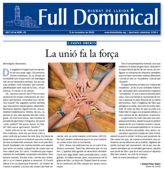 “Full Dominical” Bisbat de Lleida (9 de novembre de 2025)
