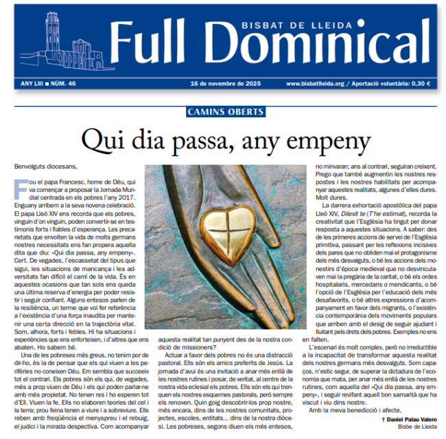 “Full Dominical” Bisbat de Lleida (16 de novembre de 2025)