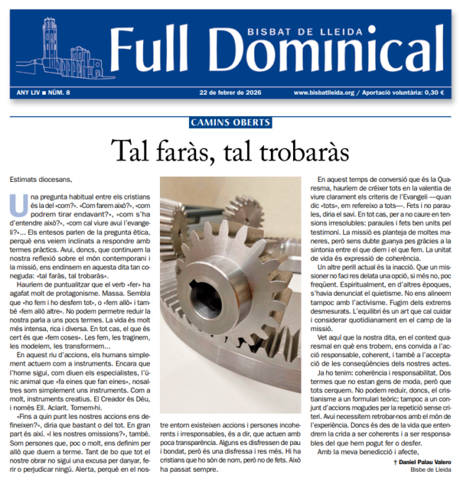 “Full Dominical” Bisbat de Lleida (22 de febrer de 2026) Full Dominical Bisbat de LleidaBy Pepe Latorre López20/02/2026Leave a commentFull Dominical complet del diumenge 22 de febrer de 2026