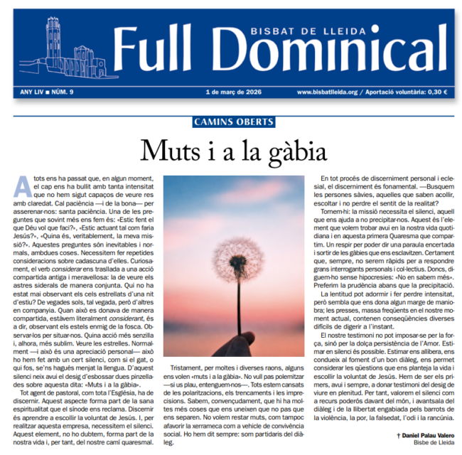[L’EVANGELI DES DE L’ART]: “UNA MIRADA ARTÍSTICA A L’EVANGELI DEL DIUMENGE” – 1 DE MARÇ DE 2026