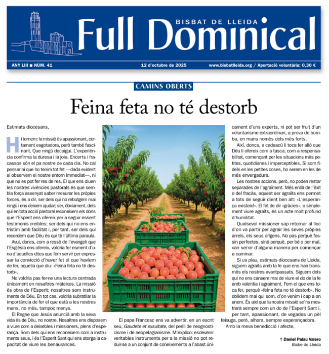 “Full Dominical” Bisbat de Lleida (5 d’octubre de 2025)