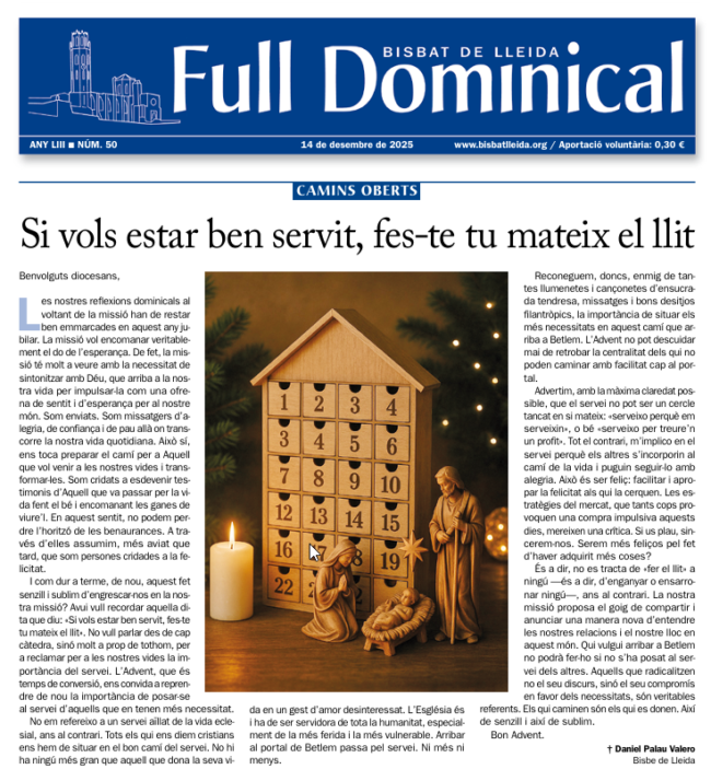 “Full Dominical” Bisbat de Lleida (14 de desembre de 2025)