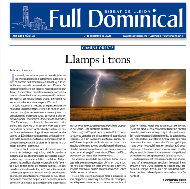 “Full Dominical” Bisbat de Lleida (7 de setembre de 2025)
