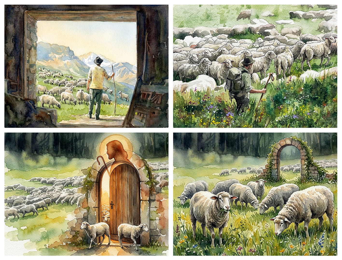Jesús els parlà amb aquest llenguatge, però ells no entengueren què volia dir. Jesús continuà: «Us ho dic amb tota veritat: Jo soc la porta de les ovelles. Tots els qui havien vingut abans que jo eren lladres o bandolers, però les ovelles no en feien cas. Jo soc la porta. Els qui entrin passant per mi, se salvaran de tot perill, podran entrar i sortir lliurement i trobaran pasturatges. Els lladres només venen per robar, matar i fer destrossa.