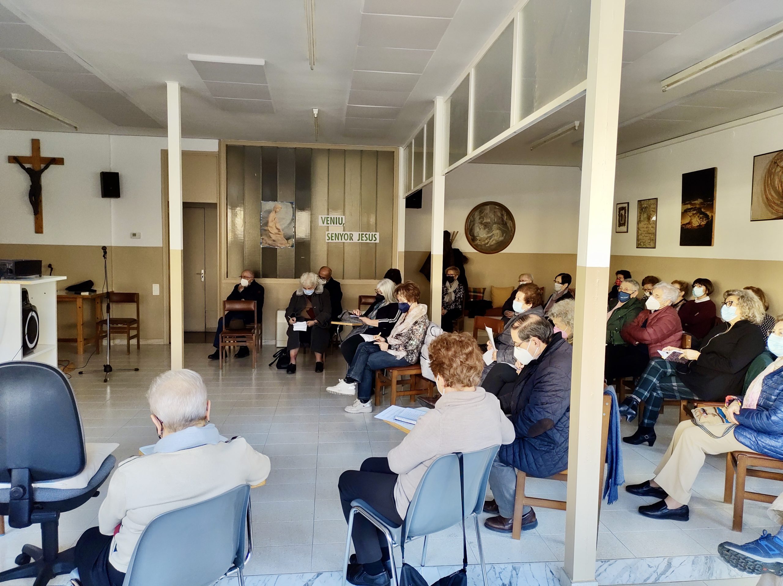 A la sala Andrea de la parròquia de Sra. Mª Magdalena es van aplegar una quarantena de persones, mentre que de forma virtual, mitjançant la plataforma zoom, van poder seguir la trobada i participar vuit persones més.