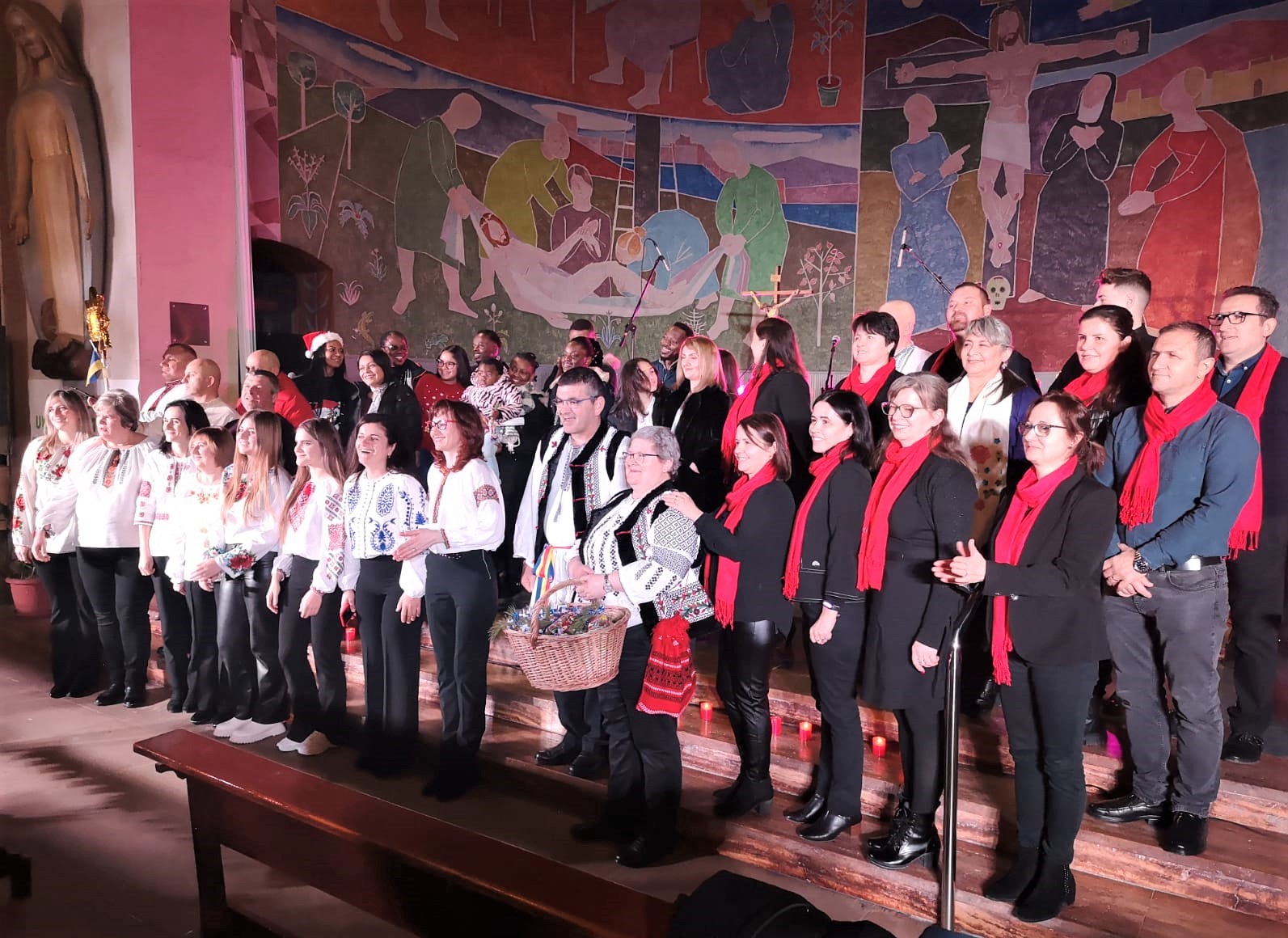 Van intervenir el grup de romanesos catòlics, presentant els cants de la “Missa Rorate” que se celebra cada dia d’Advent, preparant la celebració del naixement del nen Jesús. A continuació, els joves de la comunitat copta egipcia, amb els himnes i els cants de l’Evangeli de Nadal. Un jove originari de Burkina Faso, va interpretar una cançó de Nadal del seu país. El recorregut va seguir per Veneçuela, amb el grup que va interpretar els cants específics de la “misa de aguinaldo”, celebrada a Veneçuela i a altres països de Llatinoamèrica. Una jove de la parròquia de Magdalena, l’Antonella, també veneçolana, va cantar la cançó del ” Niño Jesús”, invocant l’arribada del Nen al nostre món. La comunitat ucraïnesa de Lleida va cantar tres solemnes cançons nadalenques, convidant-nos a l’alegria malgrat que la situació actual del seu país no convidi precisament a l’alegria. De tornada a Llatinoamèrica, la Milagros, va interpretar dues nadales amb la seva guitarra, una de peruana i una altra de veneçolana. Amb la comunitat ortodoxa romanesa i georgiana, el concert es va desplaçar a la litúrgia oriental, amb les seves entonacions tan especifiques.