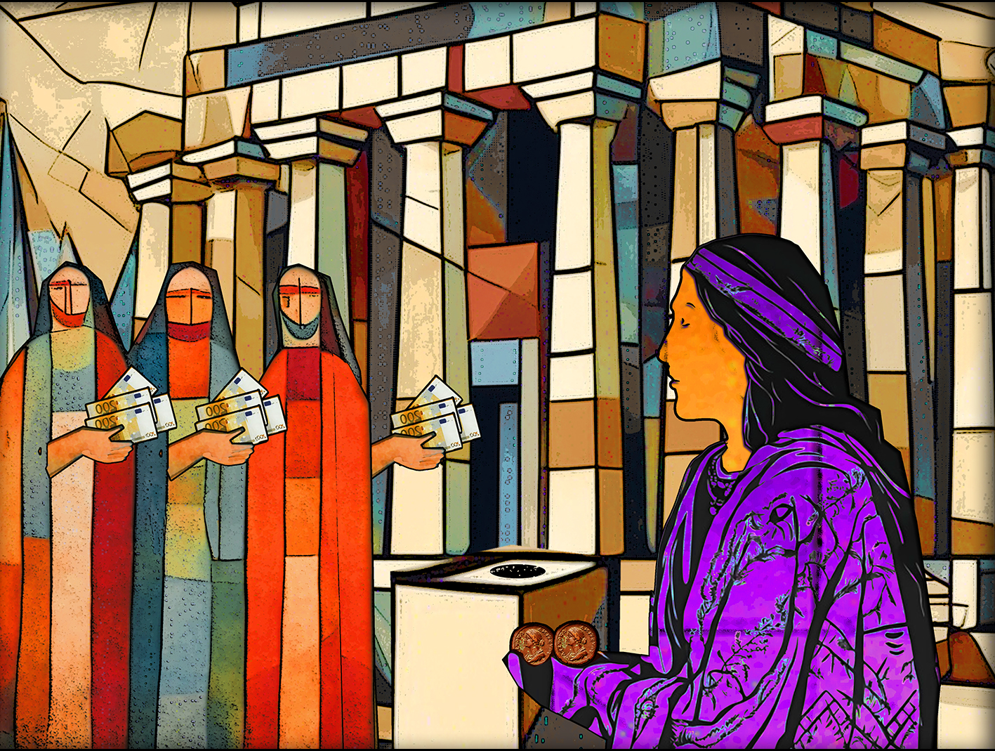 lloa l’acció de la viuda, una dona moguda per l’amor, una dona que dona tot el que